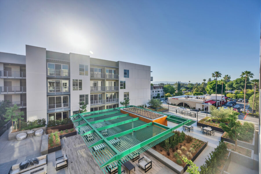 Our studio luxury apartments in Sherman Oaks feature premium finishes, in-home washer and dryer, walk-in Elfa closets, and a private patio or balcony—perfect for effortless, modern living.