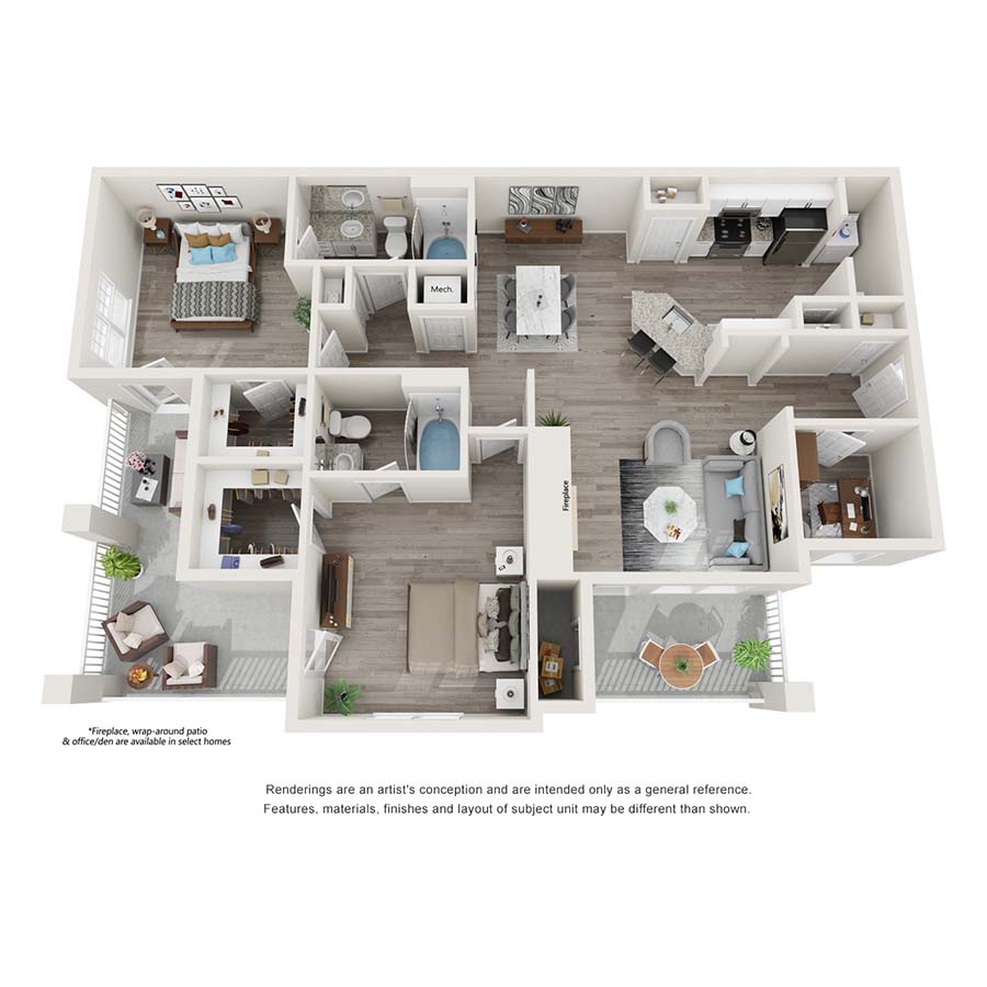 Whether you’re looking for a one, two or three-bedroom home, every apartment home at IMT Deerfield comes with the space and amenities you need to thrive. Use the filters and map below to find the perfect floorplan and location for your needs.