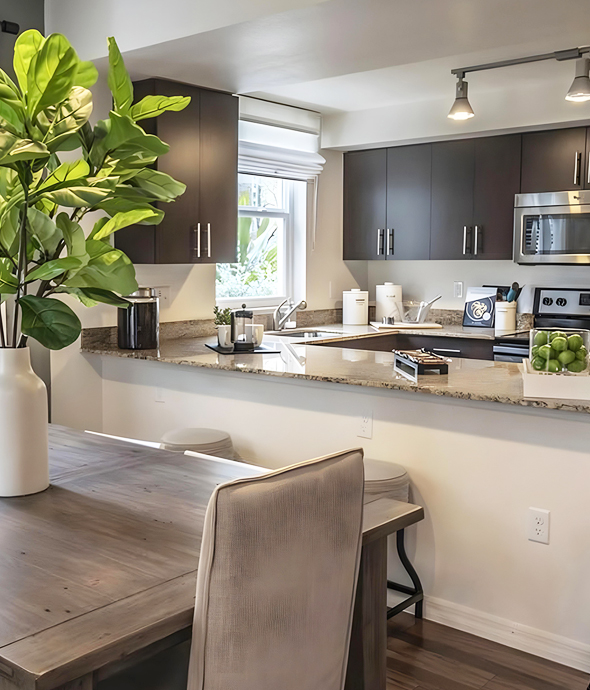 At IMT Gulfstream, our homes feature thoughtful details and premium finishes designed to elevate your daily living experience. Enjoy apartment features like keyless entry, granite countertops, and EV-ready direct-access garages, paired with resort-style amenities including two heated pools, modern fitness centers, and inviting social spaces. Explore the full list of apartment and community amenities below.