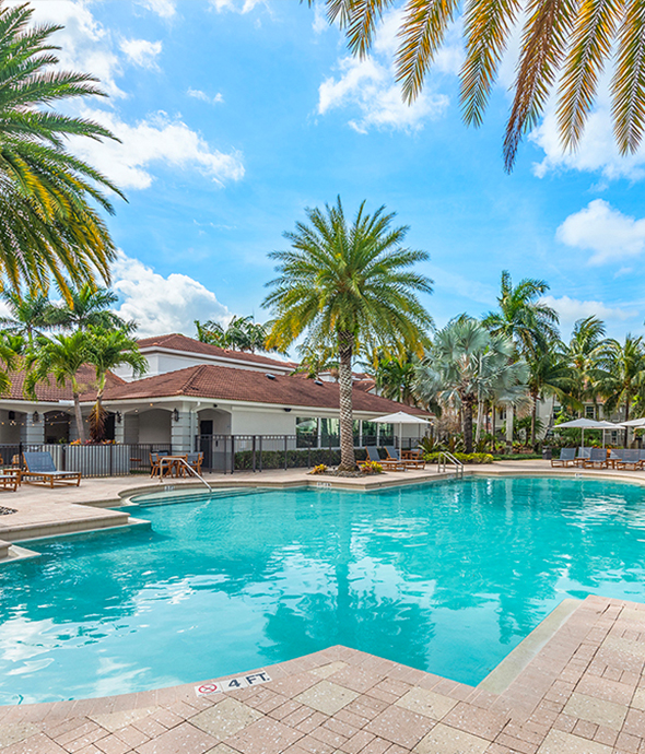 - Two Resort-Style Heated Pools with Poolside Cabanas, Barbecue Areas and Lounge Seating